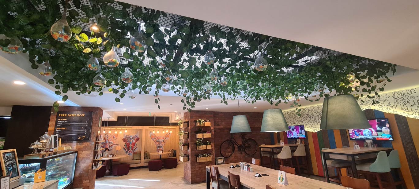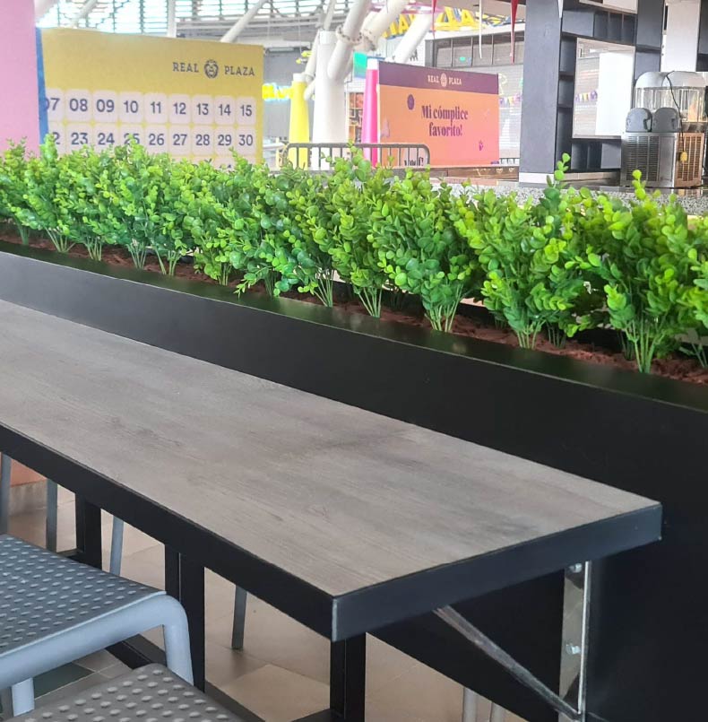 Variedad de arboles y plantas para una decoración permanente con gastos mínimos de mantenimiento.